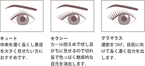 長さ、太さ、本数、カラー、カールタイプと豊富な種類の中からお選びいただけるので、